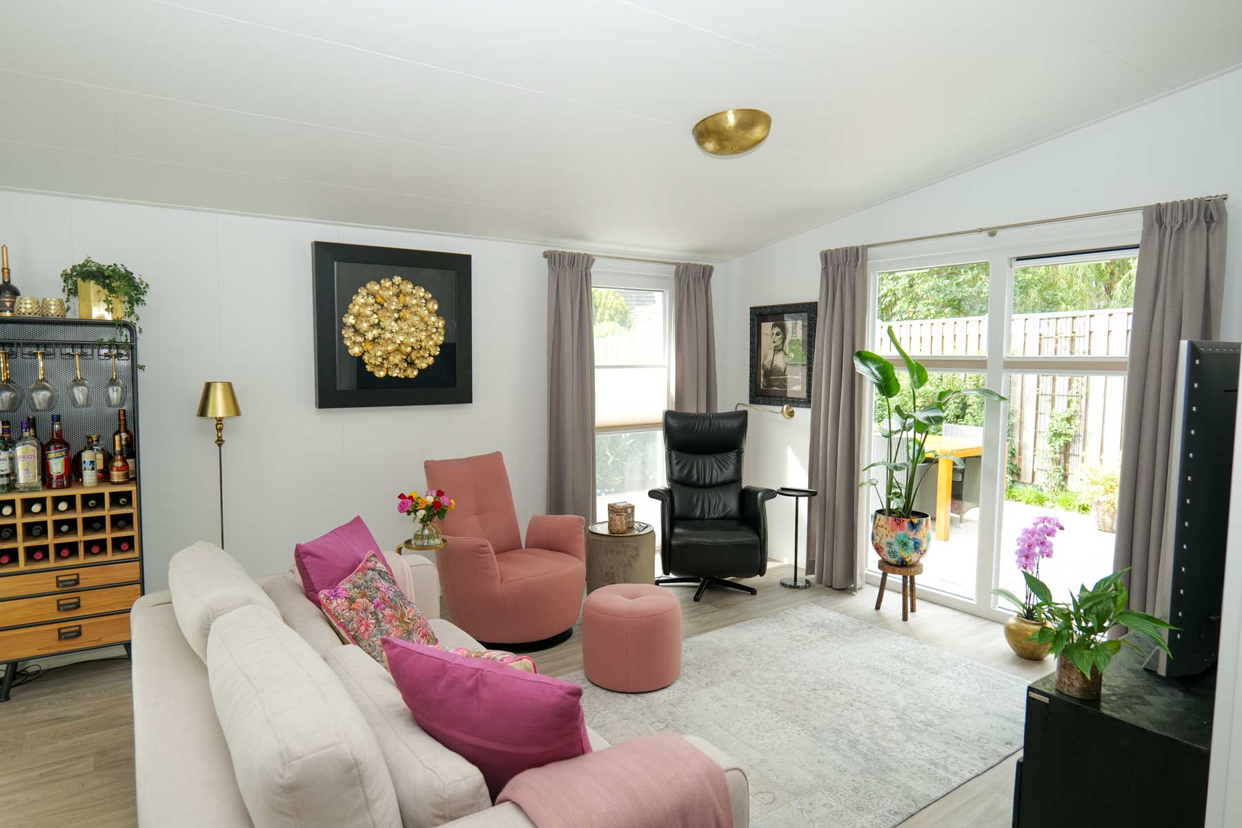 Zo fijn dat jullie geassisteerd hebben met de gemeente. We mochten eerst maar 56 m2 en door jullie hulp mochten we 100 m2 plaatsen. Zo fijn! Het plaatsen van zo'n grote woning was een hele onderneming. Met een kraan over het huis en dat straatje hier is ook niet het makkelijkste straatje. We zijn er zo blij mee en overal genoeg ruimte. We hebben zelf nog een prachtige tuin over en je ziet de eenkoorntjes langs huppelen. Dat is zo fantastisch. We willen echt niet meer weg. Iedereen zegt ook "oohhhh, wat een prachtig huis."