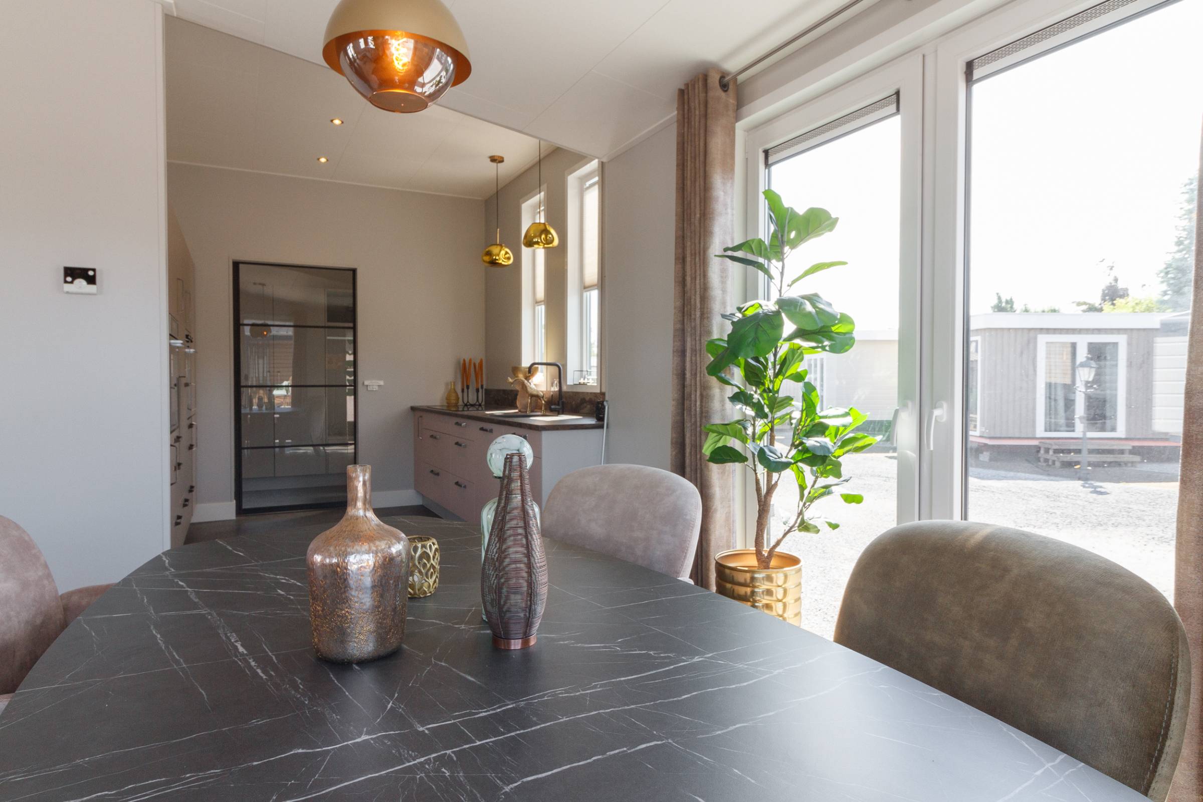 De keuken van dit inspiratiemodel is zeer luxe uitgerust. Daarnaast is al het apparatuur op hoogte geplaatst zodat u niet te hoog hoeft te rijken of hoeft te bukken. De keuken beschikt over een soft-close systeem, een grote koelkast, een oven, een stoomoven en een warmhoudlade.